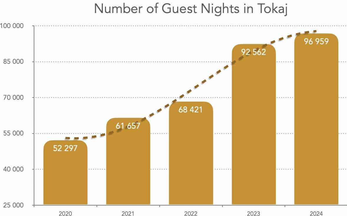 AMONG THE TOURISM REGIONS, TOKAJ-HEGYALJA IS ONE OF THE MOST DYNAMICALLY DEVELOPING DESTINATIONS IN HUNGARY, WHERE THE NUMBER OF GUEST NIGHTS INCREASED BY 5% IN 2024 COMPARED TO THE PREVIOUS YEAR, AND THE DEMAND FOR PREMIUM ACCOMMODATIONS IS CONTINUOUSLY RISING.